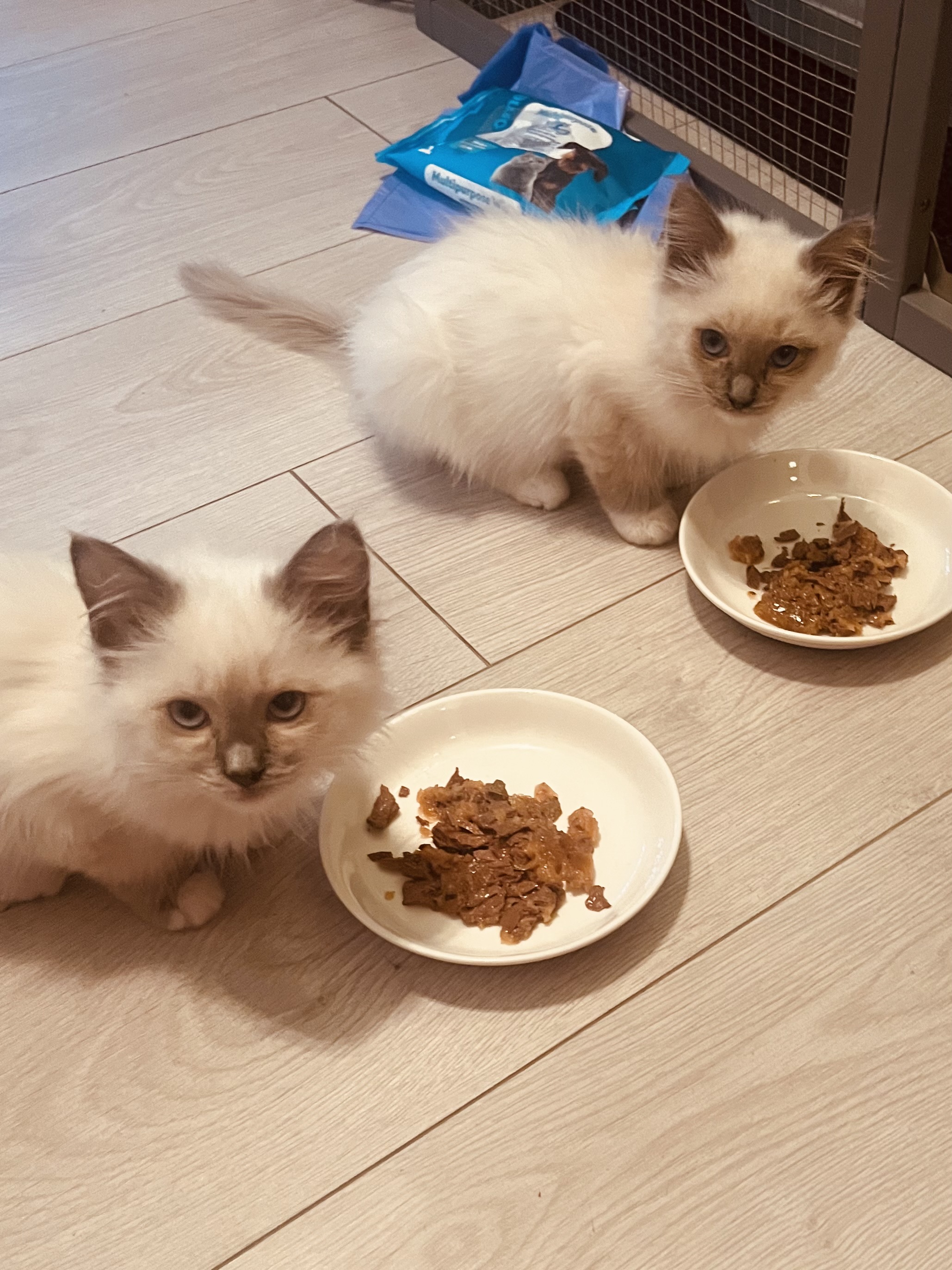 New kittens learning to eat solids